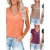 Solid Color V-neck Short-Sleeve T-shirt Solid Color and V-neck Pleated Short Sleeves T-shirt Women