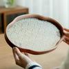 Simple Begonia Embossed Glass Tray Wooden Storage Display Plates Multi-Function Tea Tray Desk