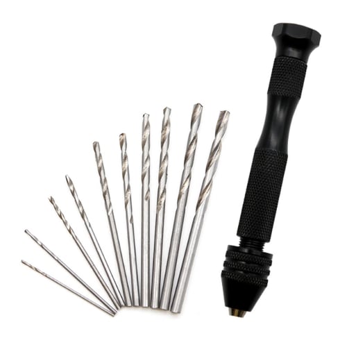 CHENLONB Hand Drill, Pin Vise, Small Drilling Tool, No Power Supply Required, Manual Drill, DIY Tool, Includes 10 Drills, 0.8mm-3mm, Storage Case Incl