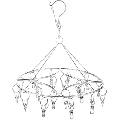 Skroad Round Sock Dryer for Underwear, Lingerie, Baby Clothes, and Small Laundry Items, Stainless Steel Rotating Drying Rack with 20 Pegs