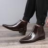 Men Classic Retro Chelsea Boots Genuine Leather High Top Pointed Toe Casual Comfortable Warm Plush Business Ankle Boots