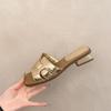Thick-heeled slippers women's 2025 summer new Korean version versatile square head high-heeled European and American casual fashion cool slippers wom