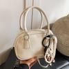 Retro commuting simple Korean version casual solid color portable bowling bag fashion high sense versatile commuting messenger bag