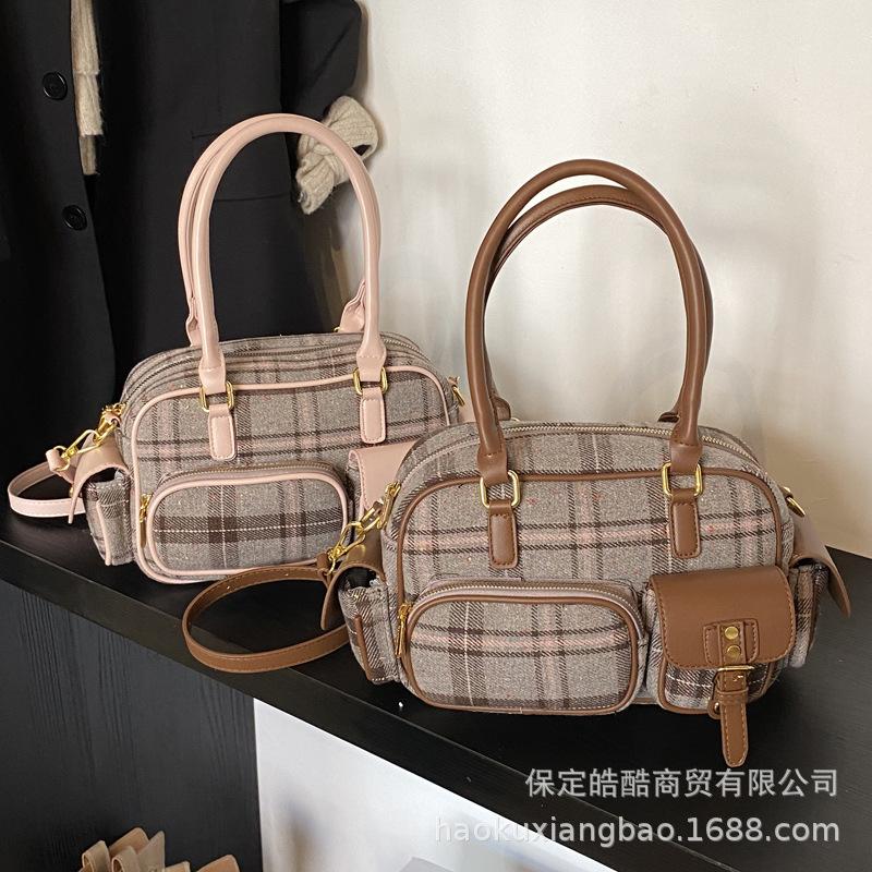 Premium texture bowling bag women's 2025 autumn and winter new trendy Boston handbag versatile commuter messenger bag