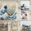 Vodotěsná polyesterová tkanina Sprchový závěs Vlny v japonském stylu Samurajská krajina 3D tisk Koupelnová dekorace Sprchové závěsy