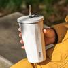600ml Portable Coffee Cup Tyeso Stainless Steel Thermos Bottle with Straw Summer Cold Drink Cup Students Vacuum Insulated Bottle