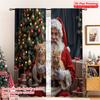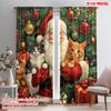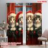 2pcs HD Christmas Snow mountain wearing Christmas hat Russian cat gift box decorative curtain Black tie digital printed curta