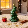 Fabric Christmas Tree Figurine Handmade Multi-Layer Xmas Tree Ornament with Buttons Scissors And Star Topper Holiday Patchwork Craft