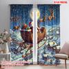 2pcs 2D flat printing Merry Christmas Window Drapes Santa Sleigh Deer Night Polyester Fabric Without Electricity Spring for
