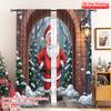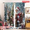 2pcs 2D flat printing Christmas Curtain Santa Christmas Snow Scene Polyester Fabric Without Electricity Party & Holiday Decor