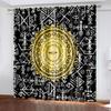 2pcs- Mysterious black totem polyester curtains, pole bag curtains 42 * 84, bedroom, living room, family room decoration
