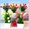 Plastic Lily Cherry Blossom Rose Flowers Potted Plant For Decor Home