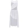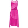 Dívčí výkonnostní šaty Krajková patchworková vsadka Řasený síťovaný přehoz Asymetrický lem Třpytivé kamínky Taneční oděv