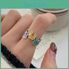 Copper Fashionable Chic Gold Ring For Women With Adorable Rabbit And Clover Motif