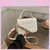 Simple Plaid Woven Texture Diagonal Buckle Women Small Square Bag Casual For