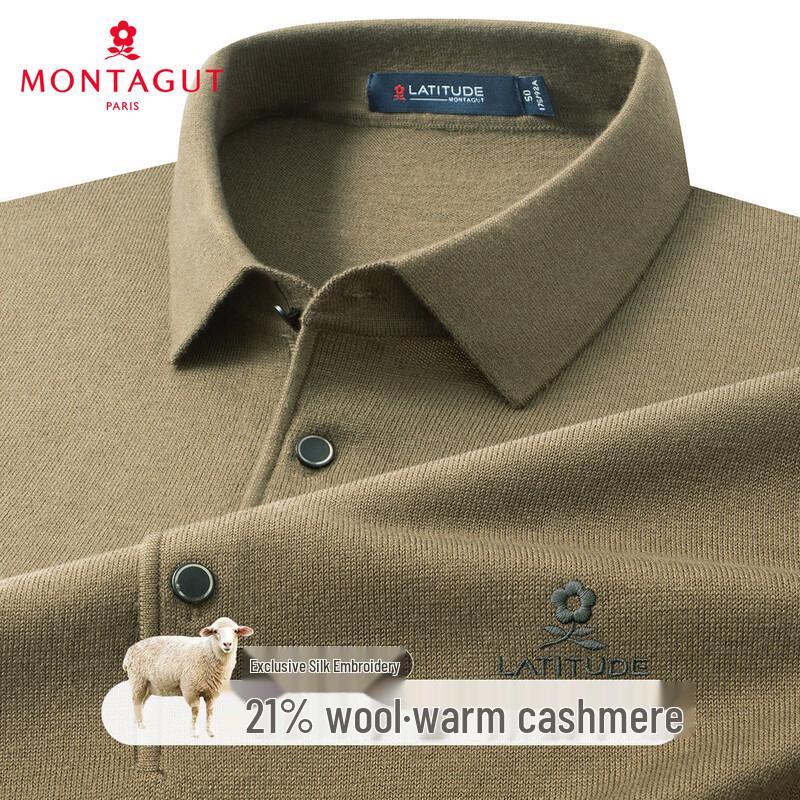 MONTAGUT Men's Cashmere Wool Blend Polo Collar Knit Sweater