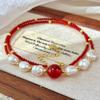Vintage New Year's Red Pigeon Blood Red Natural Chalcedony Agate Baroque Pearl Necklace Collarbone Chain