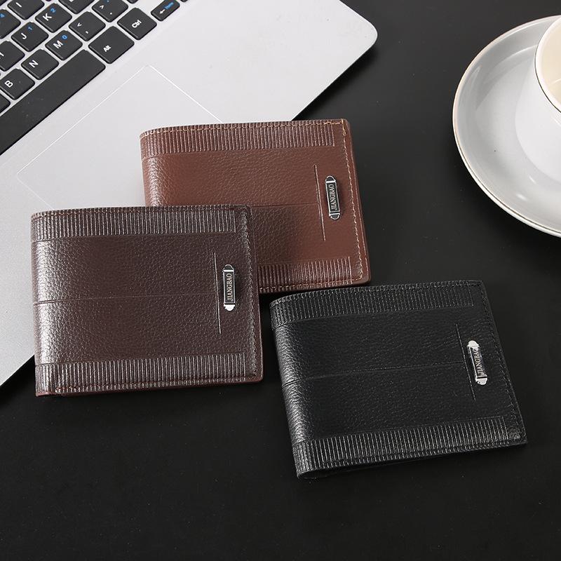 Men's Slim Bifold Wallet - Short Style, Multi-Card Slots, Casual Leather Money Clip