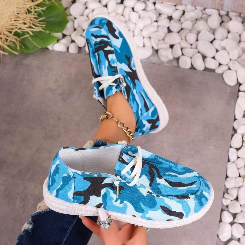 Plus Size Spring New Lace-up Camouflage Canvas Women's Flat Casual Shoes Women's Cloth Shoes