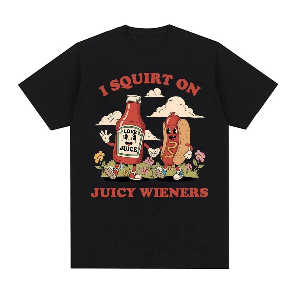 I Squirt on Juicy Wieners Graphic T Shirt Funny Meme T Shirts Men Women Adult Humor Casual Cotton T-shirts Popular
