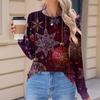 Women's Fashionable Casual Christmas Printed Pleated Comfortable Round Neck Loose Long Sleeve T-Shirt Top