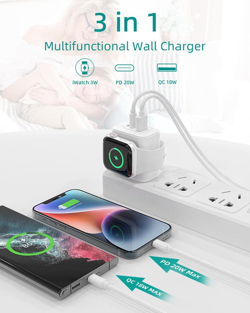 1/2pcs Magnetic Wireless Charging Block 3-in-1 Dual Port for iWatch Series Ultra/SE/9/8/7/6, iPhone 16/15/Pro Max iPad Pro/Air