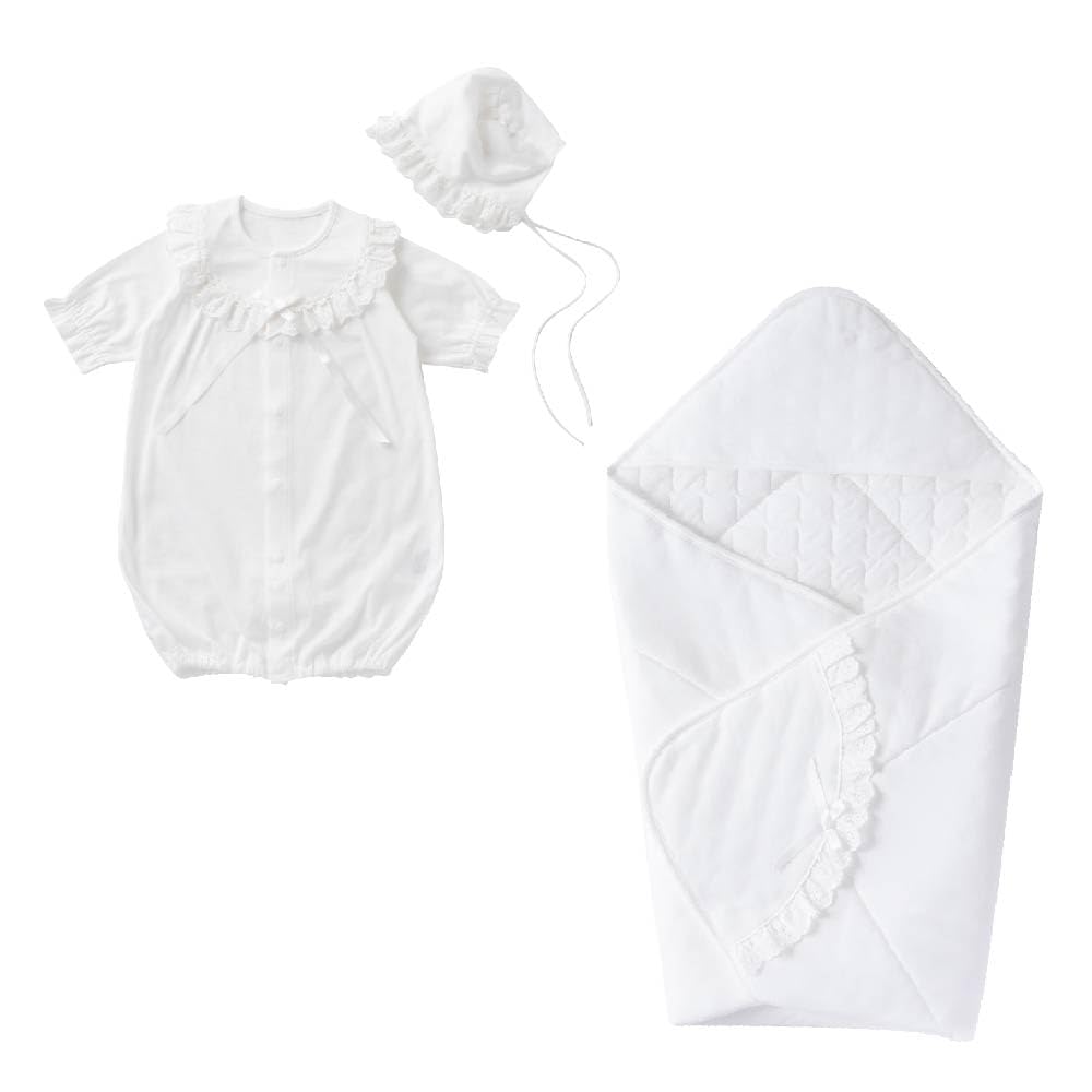 Cream de Coco Cotton Lace Ceremony Dress Set and for Newborns and Made in Sizes Product 63564SOW 3-Piece (Two-Way All, Hat, Afghan) Babies.
