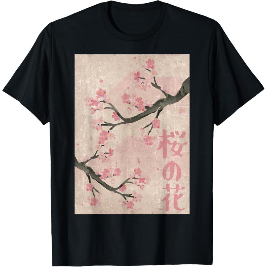 Cherry Blossom Japanese Vintage Woodblock Japan Pink Sakura T-Shirt