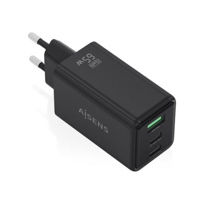 Chargeur mural GaN 65W - AISENS - 2xUSB-C PD3.0 QC4.0 - 1xUSB-A QC3.0 - Noir - Technologie GaN - Charge rapide