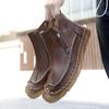 Herrenschuhe im britischen Stil mit dicken Sohlen zur Höhenvergrößerung, trendige, rutschfeste und wasserdichte High-Top-Motorradstiefel aus Leder