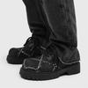 Fashion Men's Distressed Denim Platform Round Toe Derby Shoes Casual Big Head Leather Shoes Niche Avant-Garde Streetwear Shoes for Mens
