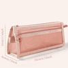Desk Storage Pencil Case with Handle and Zipper Clear Double-layer Pencil Pouch Marker Pouch, Cute Stationary Organizer Pen Bag