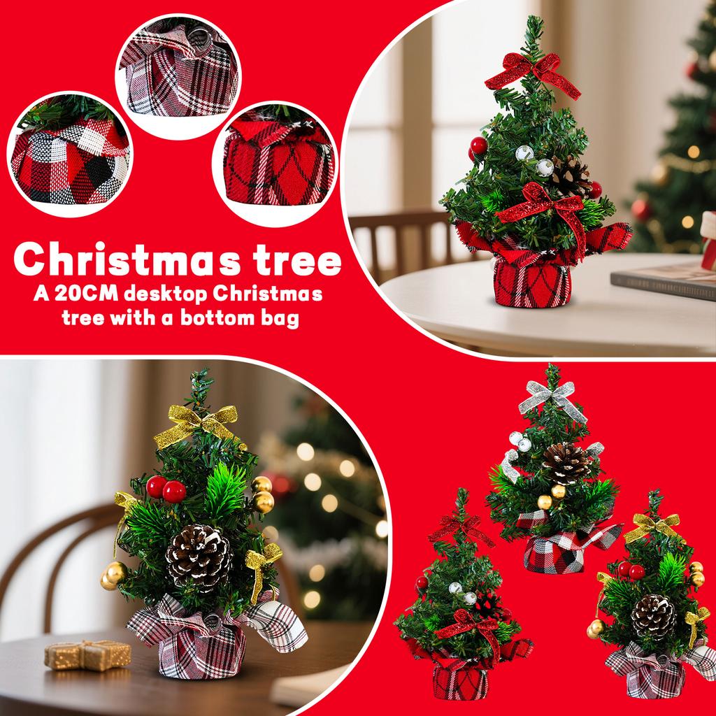 20CM Bottom Covered Desktop Christmas Tree Red And Black Checkered Scottish Indoor Christmas Bow Decoration
