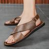 New Men's Summer Leather Plus Size Flat Sandal Non Slip Open Toe Hook Hollow Breathable High Quality Beach Sandal