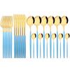 Jankng Gold 24Pcs Dinnerware Stainless Steel Cutlery Set Knife Fork Spoon Western Tableware Set Dinner Kitchen Silverware Set