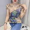 Creative Printed Short Sleeved T-shirt for Women's Summer Wear New Fashionable European Design Slim Fit and Western-style Letter Half Sleeved Top