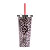 24Oz Straw Cup Leopard Print Magic Semi-Round Cover Water Cup Large Capacity Portable Double Layer Plastic Cup