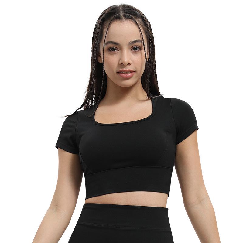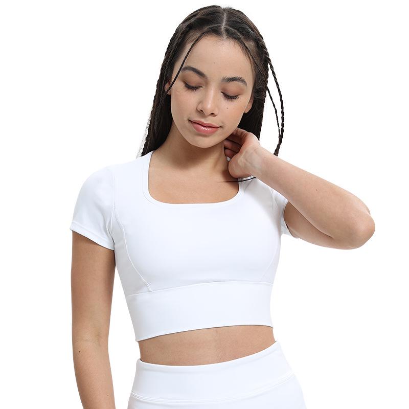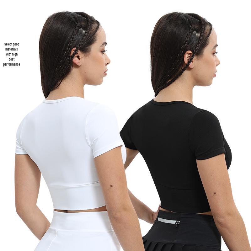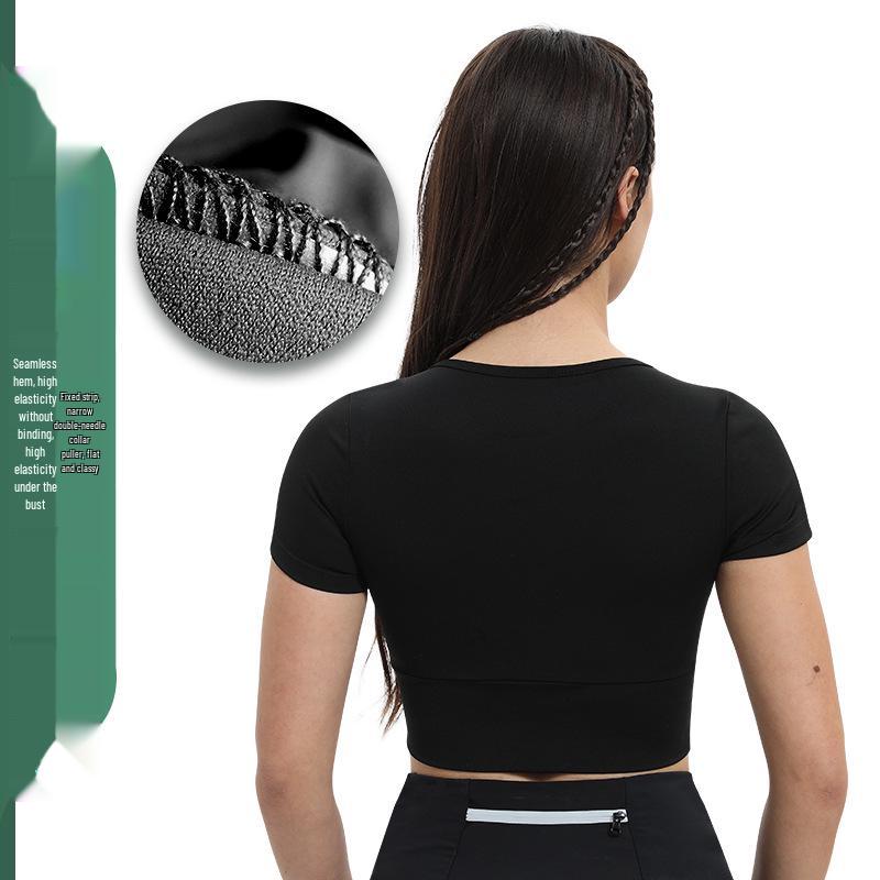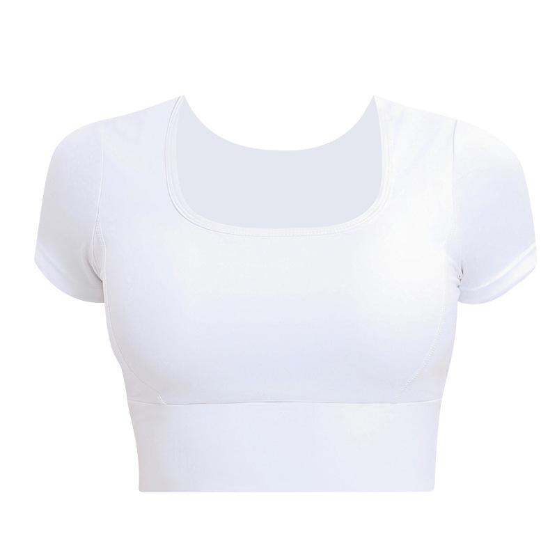 Sexy Short-Sleeve Yoga Top with Chest Pads - Exposed Collarbone Fitness Bra