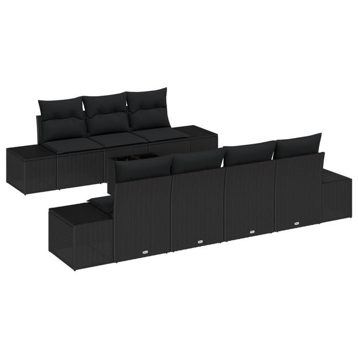 VidaXL Ensemble de Canapé de Jardin 8 Pièces avec Coussins Noir Poly Rattan 3346973