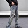 Men's Spring & Autumn Gradient Washed Flared Jeans - Distressed, Cool, Loose Straight, High Street Style Casual Pants