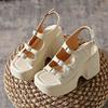 Roman Slope Heel Sandals for Women 2024 Summer New Hollow Thick Open Toe Casual One Line Buckle High Shoes Sandalias Mujer 2024