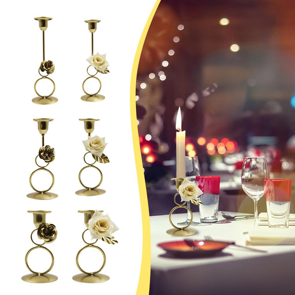 Iron Candlesticks, Vintage Metal Carved Flower Circular Ring Candle Holder Desktop Decorative Candle Stand For Wedding Dinning Party Table Home Decor