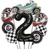 8 Pcs Race Car Theme Number Foil Balloon Set 40Inch Digit Motor Helmet Wheel Tire Racing Balloons Boy Birthday Decoration Baby S