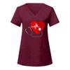 European and American Nurse Caregiver V-Neck Print Shirt with Large Pocket, Short Sleeve T-shirt for Women