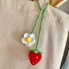 Cute Handmade Flower Knitted Pendant Car Rear View Mirror Decor Hanging Crochet Pink Strawberry Bag Key Pendant Women Girl Gift
