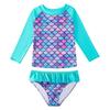 Girls' Long Sleeve Fish Scale Swimsuit Set with Sunscreen Protection