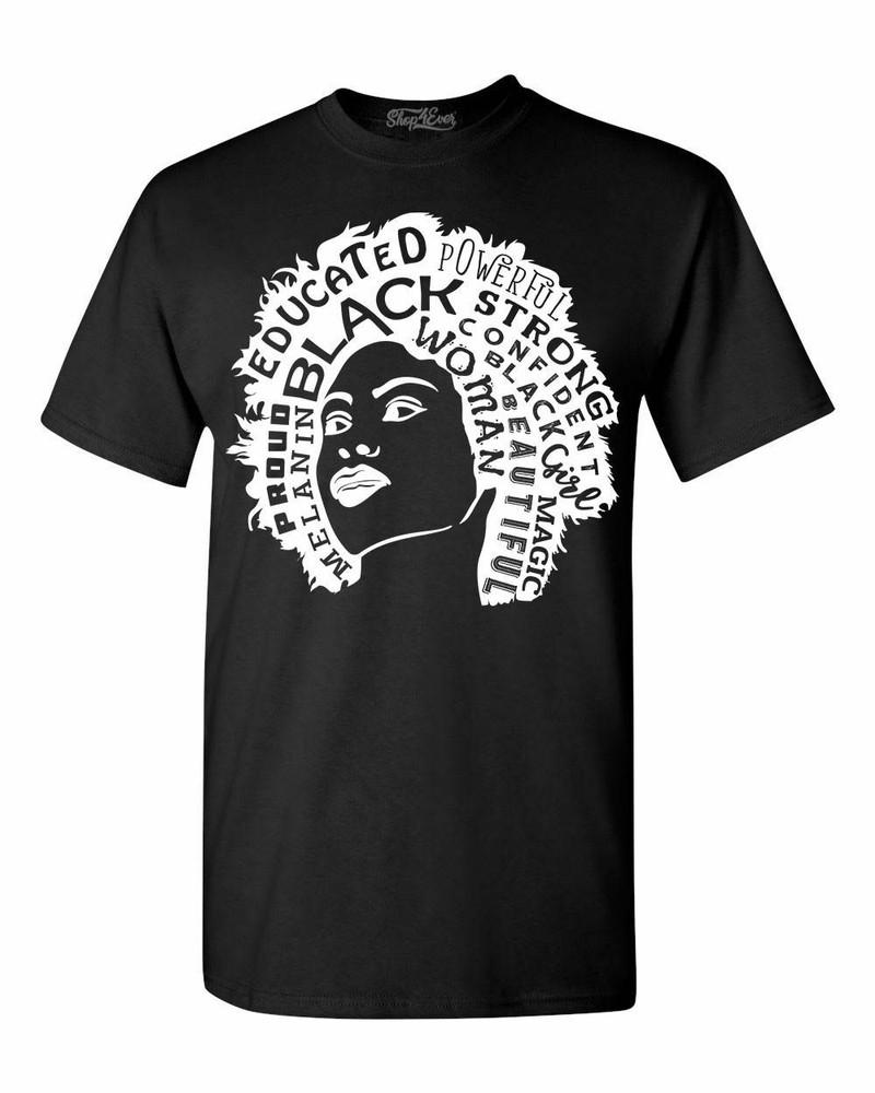 Brown Skin Girl Afro Word Cloud Wht T-shirt Black History Shirts