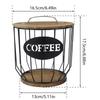 Coffee Capsules Holder Metal Large Capacity Coffee Pod Organizer with Wooden Lid for for Coffee Bar Counter Storage Container