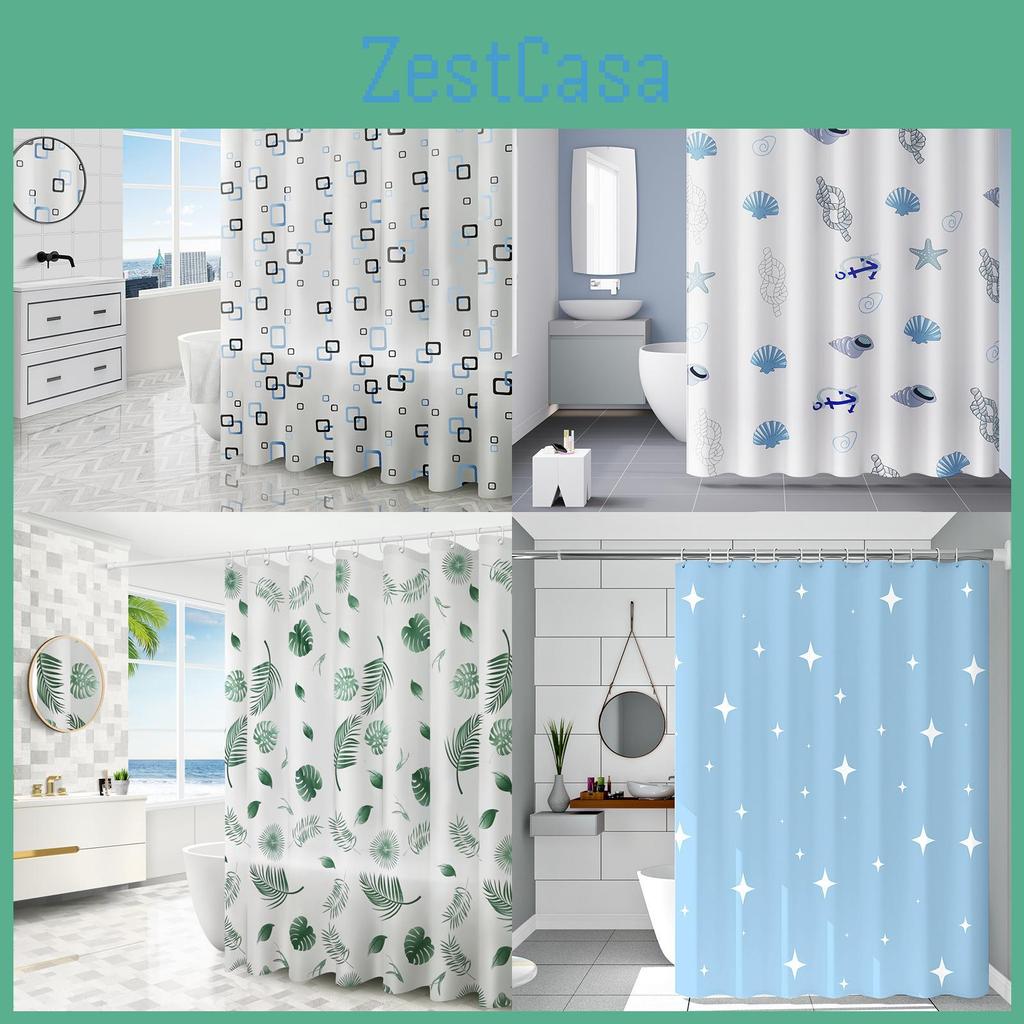 Pattern Geometric Leaf Peva Shower Curtain Waterproof Moldproof Bathroom Divider