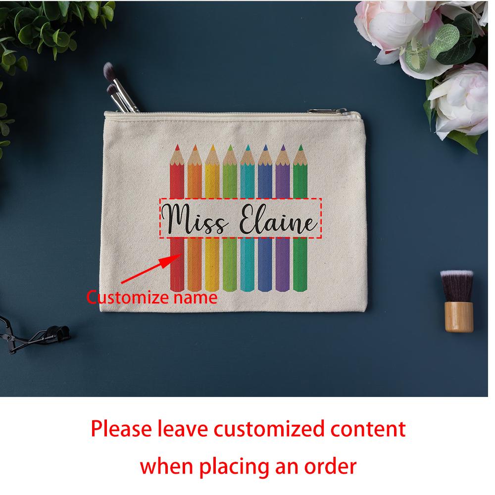 Custom Canvas Pencil Case Preschooler Zipper Pouch Makeup Bag Birthday Teacher School Supplies Appreciation Gift Back To School